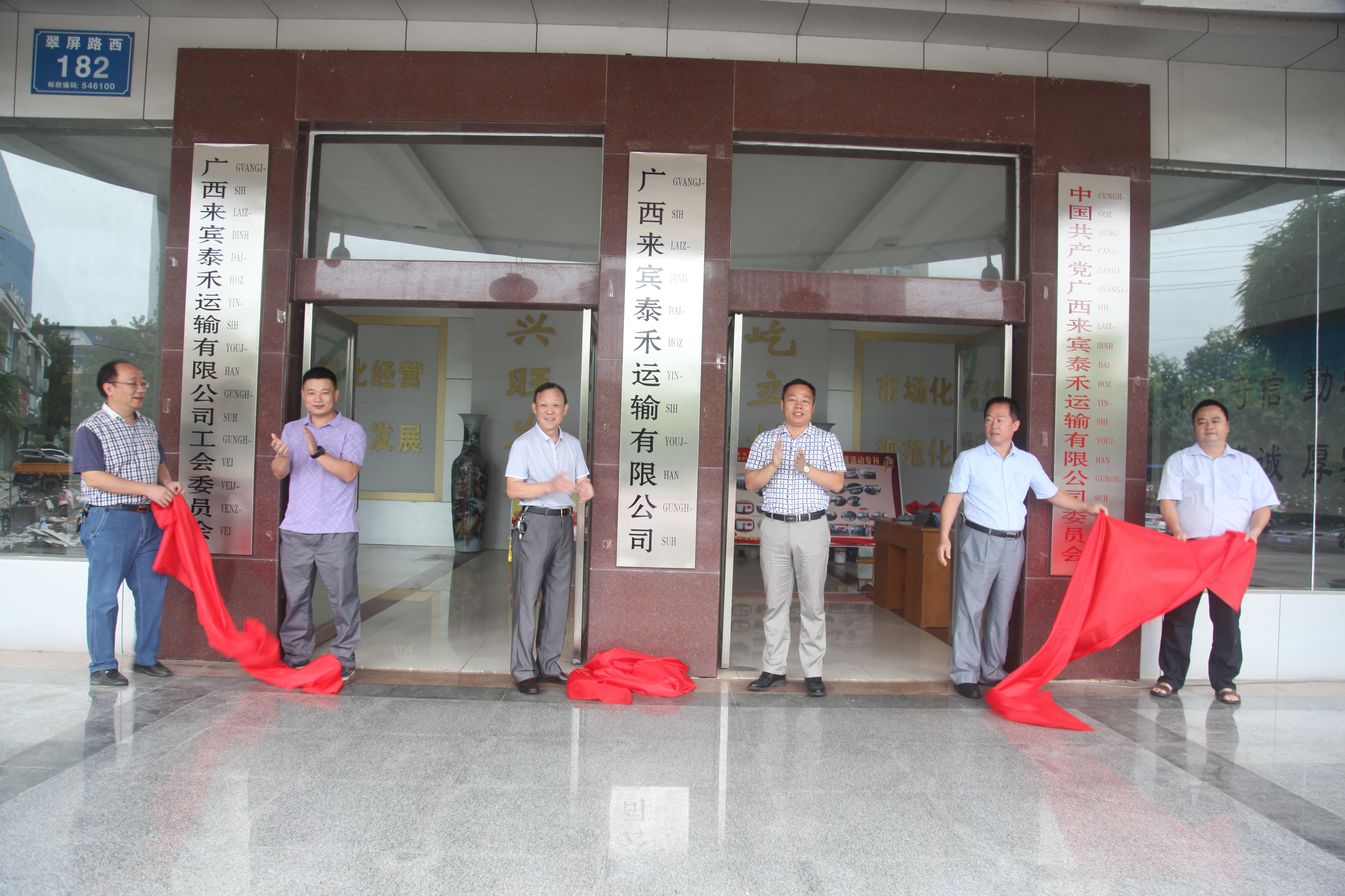 当日上午10时整,在同志们热烈的掌声和鞭炮声中,谭艺董事长与班子成员一道为新公司揭牌,宣告广西来宾泰禾运输有限公司正式挂牌成立!
