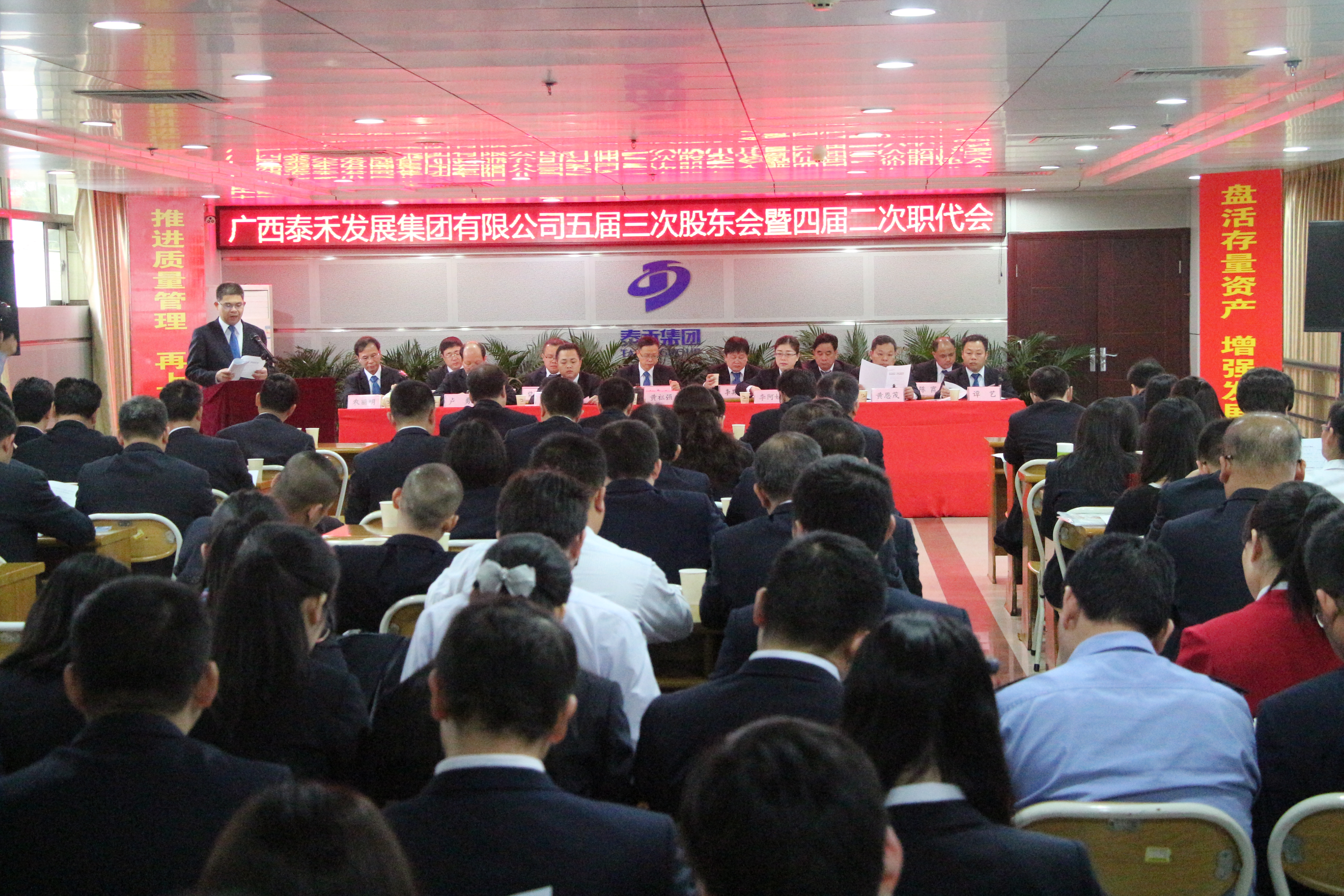 元月10日,广西泰禾发展集团有限公司五届三次股东会暨四届二次职工代表大会在集团总部顺利召开。集团公司董事长、总裁黄祖强,副总裁李阿娣、黄天华、卢勇、黄恩茂,监事会主席、工会主席农丽明,党委副书记谭艺,总工程师甘小露以及来自集团所属各单位股东代表、职工代表和列席代表共140余人参加了本次大会。