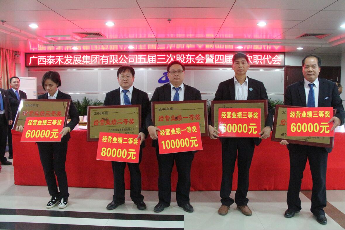 会上,集团公司领导分别为荣获2016年经营业绩奖、管理业绩奖,泰禾之星的单位及个人颁发奖牌和荣誉证书。